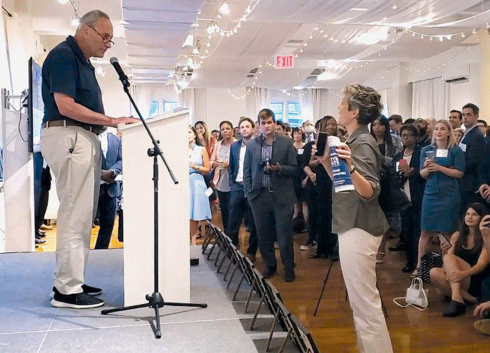 Sare: I think we definitely need a voice nationally for the policies of Lyndon LaRouche, particularly since everything that he warned about throughout his many years of economic forecasting, political forecasting, is now occurring. Most recently, one of our associates, Paul Gallagher, brought up Mr. LaRouche’s comments after the murder of Qaddafi in Libya, saying that the intent of this was to go for war with Russia, not because of anything Russia had done, but to create a major conflagration so that the City of London and Wall Street, the great financial interests which Schumer represents, could in effect blow out the system under the cover of war, and then write off all of their debt. So LaRouche was warning of this already in 2011. Schumer, as the majority leader of the U.S. Senate, is the hatchet man, the front man for these policies. He actually bragged at an event—I attended a cocktail reception at City and State magazine where he bragged that a hip-hop band on Staten Island had given him the nickname “Killer Chuck.” I think it is a very appropriate moniker for his activity.