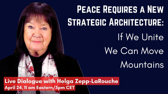 Join Helga Zepp-LaRouche in her Weekly Live dialogue April 25, 11am Eastern/4pm CET and help usher in the Year of the New Paradigm for all Humanity. Send your questions, thoughts and reports to questions@schillerinstitue.com or ask them in the live stream.