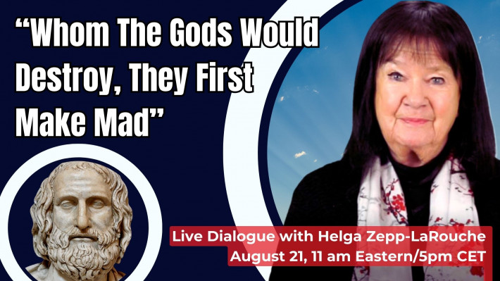 Join Helga Zepp-LaRouche August 21, 11am Eastern/5pm CET in her Weekly Live dialogue and help usher in the Year of the New Paradigm for all Humanity. Send your questions, thoughts and reports to questions@schillerinstitue.org or ask them in the live stream.