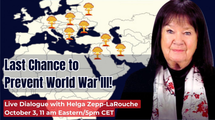 Join Helga Zepp-LaRouche October 3, 11am Eastern/5pm CET in her Weekly Live dialogue and help usher in the Year of the New Paradigm for all Humanity. Send your questions, thoughts and reports to questions@schillerinstitute.org or ask them in the live stream.