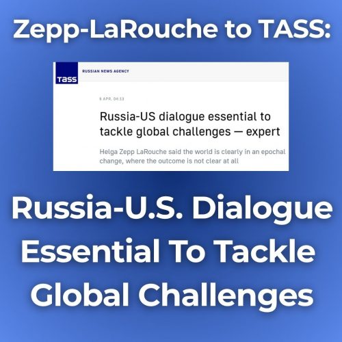 In the article titled, “Russia-U.S. Dialogue Essential to Tackle Global Challenges—Expert,” Zepp-LaRouche states: “As the Republican Congresswoman Anna Paulina Luna correctly noted, it is of the utmost importance, that the representatives of the world’s two largest nuclear powers have an open dialogue, and share ideas about crucial matters. The world is clearly in an epochal change, where the outcome is not clear at all. It could either end up in a catastrophe, or it could lead to a new era in human history, where the earlier methods of conflict resolution through wars, coups, regime change through ‘color revolutions,’ and terrorism are overcome for good, and replaced with dialogue and cooperation for mutual benefit.