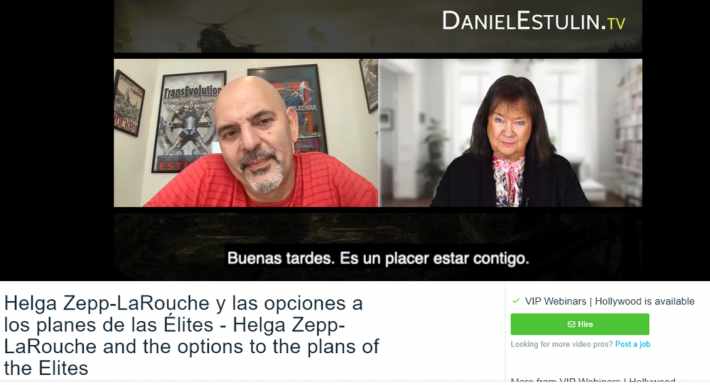 Daniel Estulin: Good afternoon, ladies and gentlemen, thanks for joining us. This is Daniel Estulin and welcome to DanielEstulin.TV. Today we have an amazing guest. It’s an honor, an absolute honor—I’m a huge fan—to have her with us, Helga Zepp-LaRouche, Lyndon LaRouche’s wife, a founder of the Schiller Institute and one of the foremost experts in the world on Nicholas of Cusa. Helga, thank you so much for joining us. Good afternoon.