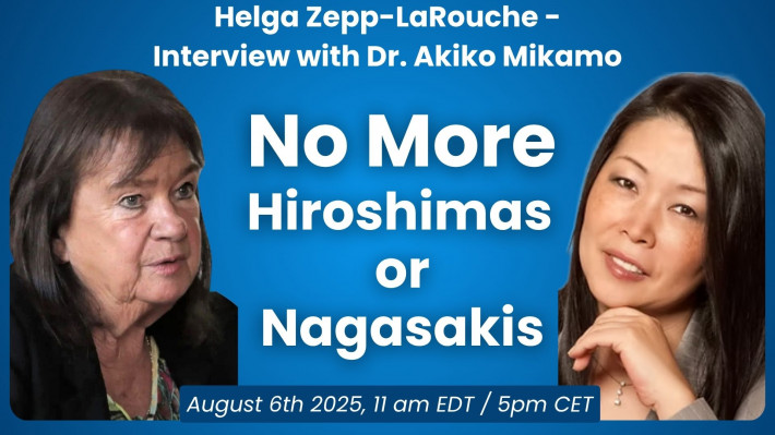 As the world remembers the unnecessary atomic bombings and loss of lives in Hiroshima and Nagasaki on August 6th and 9th 1945, Helga Zepp-LaRouche will interview Dr. Akiko Mikamo on Wednesday, August 6, 11am EDT/5pm CET.