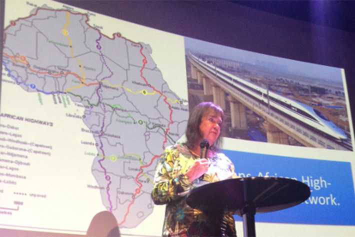 Helga Zepp-LaRouche then spoke, defining the long-term perspective for Africa and the world, presenting the World Land-Bridge report and the physical project for Africa within the framework of the Belt and Road dynamic, as in Ethiopia with the high-speed train. She also presented the other projects the Schiller Institute has developed or promoted including the Transaqua project, and the extension of the World Land-Bridge into Africa via a tunnel between Spain and Morocco and/or between Sicily and Tunisia.
