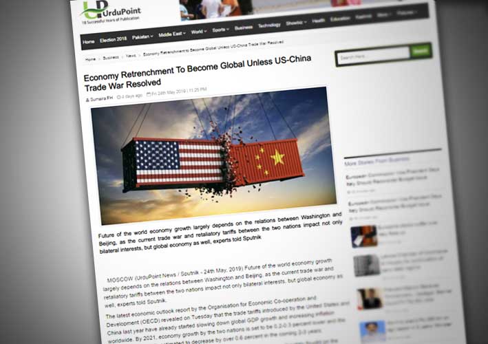 Under the title: “U.S.-China Ties Key to World Economy Growth,” UrduPoint in Pakistan on May 24 covered Helga Zepp-LaRouche’s interview with Sputnik. The interview was also covered in a Pakistani community newspaper, the Jago Times based in northwest Texas, May 25th.