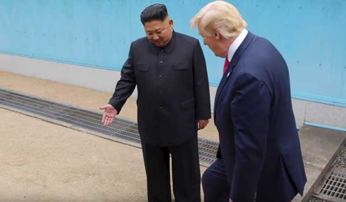 Following a 50-minute meeting with the North Korea’s Chairman Kim Jong Un in the demilitarized zone (DMZ) that divides the North and South Korea in Panmunjom, President Donald Trump said today that teams from the United States and North Korea would start meetings “over the next two or three weeks” for talks on Pyongyang’s nuclear program. Trump said he was in no rush for a deal. Negotiators will “start a process and we’ll see what happens,” South China Morning Post quoted him.