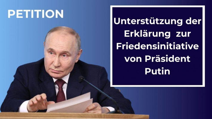 Egal welches Parteibuch, welchen Glauben, welche Nationalität ein Jeder besitzt, wir rufen dazu auf, die Friedensinitiative von W. Putin gemeinsam mit uns zu unterstützen.