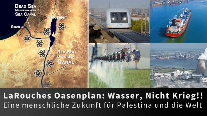Der einzige Weg, um in der Region Frieden zu erreichen, ist, gleichzeitig an der politischen und wirtschaftlichen Front voranzukommen. Eine Zweistaatenlösung, bei der die Souveränität Palästinas anerkannt und endlich umgesetzt wird, ist unerlässlich. Gleichzeitig muss der massive Wiederaufbau der Region als Teil eines umfassenden Entwicklungsplans für die Region beginnen – dem LaRouche-Oasenplan –, in dem China und die Nationen Europas und der Vereinigten Staaten gemeinsam daran arbeiten, um Kernkraftwerke zu bauen, die riesige Mengen an Meerwasser entsalzen, um die Wüste zu begrünen, und Kanäle und andere wichtige Infrastrukturen zu bauen – einschließlich Wohnungen und Krankenhäuser.