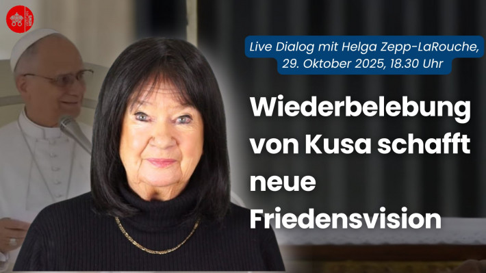 Das Aufgreifen der bahnbrechenden Konzepte von Kardinal Nikolaus von Kues (1401-1464) durch Papst Leo XIV. am 25. Oktober ist ein wichtiger Fortschritt für die Kräfte, die sich für den Frieden einsetzen. Kues‘ Konzept, auf einer höheren Ebene nach der Überwindung von Differenzen zu suchen und voranzuschreiten, wurde von Lyndon und Helga LaRouche über Jahrzehnte hinweg wiederholt untersucht, berichtet und befürwortet. Vor allem aber gründete Frau Zepp-LaRouche im Jahr 2020 eine Aktivistenvereinigung, die sie „Komitee für den Zusammenfall der Gegensätze“ nannte, basierend auf Cusas Idee der „coincidentia oppositorum“ (Koinzidenz der Gegensätze). Diese Organisation wurde zum Vorläufer der Internationalen Friedenskoalition, die im Juni 2022 auf Initiative von Zepp-LaRouche gegründet wurde auf Initiative von Zepp-LaRouche gegründet wurde und nun als wichtige Plattform für den weltweiten Dialog fungiert.