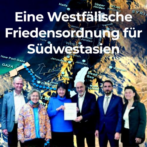 Zepp-LaRouche forderte einen Friedensprozeß nach dem Vorbild des Westfälischen Friedens, mit dem 1648 nach jahrzehntelangem Krieg und vierjährigen Verhandlungen Frieden geschaffen wurde. Die Globale Governance-Initiative von Chinas Präsident Xi Jinping gehe in die gleiche Richtung. Der Westfälische Friedensansatz bedeute, sich als erstes auf den Grundsatz zu einigen, von der Konfrontation zur Kooperation überzugehen, daß alle Konflikte durch Diplomatie und Verhandlungen gelöst und die Interessen des anderen respektiert werden.