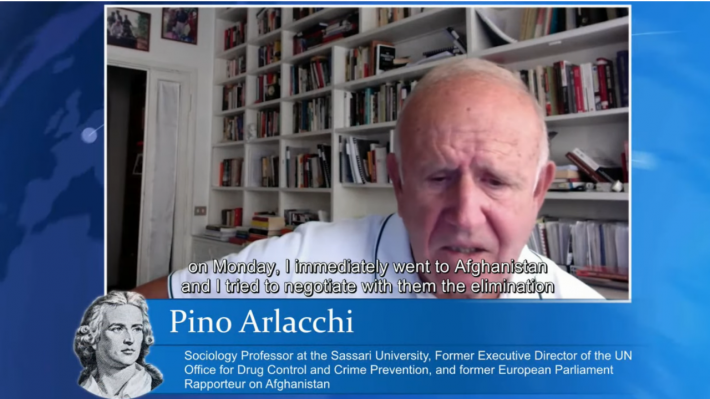 Prof. Alarchi (Italien), Professor für Soziologie an der Universität Sassari, ehemaliger Exekutivdirektor des UN-Büros für Drogenkontrolle und Verbrechensverhütung und ehemaliger Berichterstatter des Europäischen Parlaments für Afghanistan sprach auf der internationalen Internetkonferenz Afghanistan nach der gescheiterten Regimewechsel-Ära: Ein Wendepunkt in der Geschichte am 31. Juli 2021. Hier finden Sie seine Rede im Wortlaut.