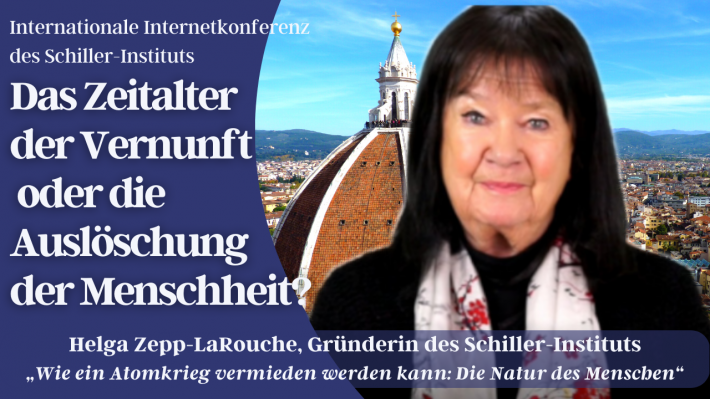 Zepp-LaRouche wies auf die Konferenzreihe des Schiller-Instituts hin, die die wichtigste Alternative zur Kriegspartei darstelle. Um aus der Kriegsgeometrie herauszukommen, sagte sie, sei es notwendig, sich um ein anderes Menschenbild zu organisieren und die Strategie- und Entwicklungspolitik mit der tatsächlichen Natur des Menschen in Einklang zu bringen. Sie forderte die Zuschauer auf, sich die Videos der jüngsten Schiller-Veranstaltungen anzusehen, um mitzuverfolgen, wie Kräfte entstehen, die sich für diesen Wandel einsetzen, und forderte sie auf, sich für die kommende Veranstaltung am 4. Februar anzumelden.