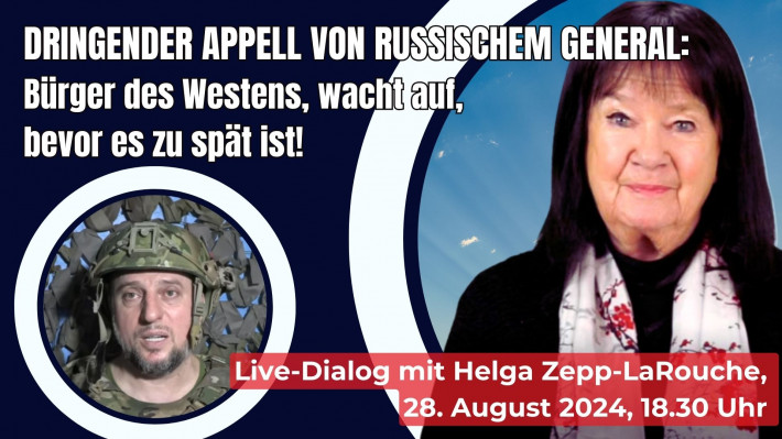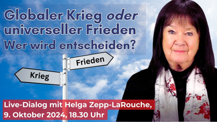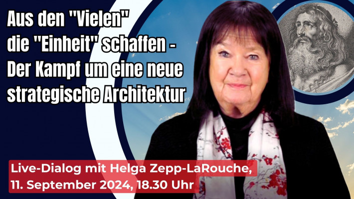 Schließen Sie sich Helga Zepp-LaRouche in ihrem wöchentlichen Live-Dialog an und helfen Sie mit, das Neuen Paradigma für die gesamte Menschheit einzuläuten. Senden Sie Ihre Fragen, Gedanken und Berichte an fragen@bueso.de oder stellen Sie diese im Live-Stream.