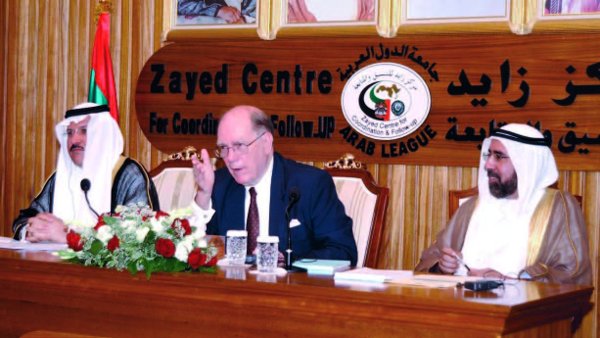 Lyndon LaRouche war 2002 in Abu Dhabi (Abbildung 16), wo er an einer großen Konferenz über die Zukunft des Öls und der Weltwirtschaft teilnahm. Der Ölminister der Vereinigten Arabischen Emirate war ebenfalls dort, und Herr LaRouche wurde als Ehrengast behandelt. Tatsächlich hatten die Botschafter der USA, Britanniens, Neuseelands und Kanadas Briefe an die Veranstalter des Zayed-Zentrums geschickt und darauf gedrängt, daß Herr LaRouche wieder ausgeladen werde und an der Konferenz nicht teilnehmen dürfe. Es wurden sogar Drohungen ausgesprochen. Doch man kümmerte sich nicht darum; damals gab es da noch einige interessante Leute.